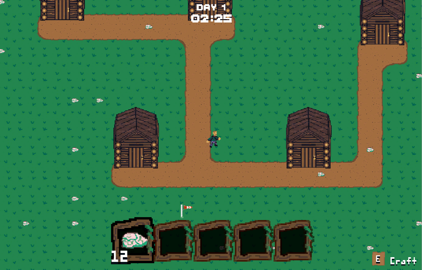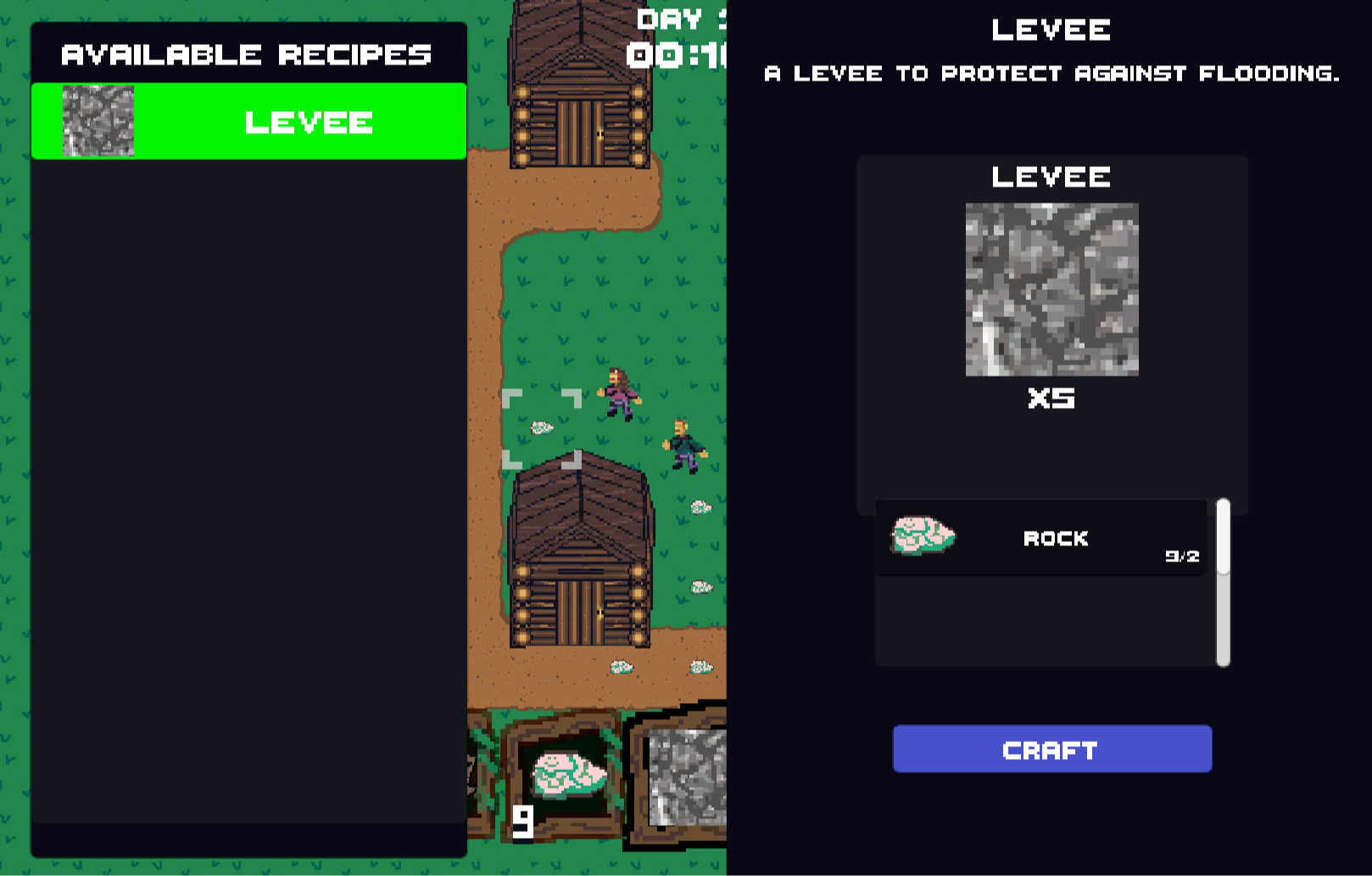 Use WASD controls and mouse to collect resources, craft, navigate your inventory, and build defenses.