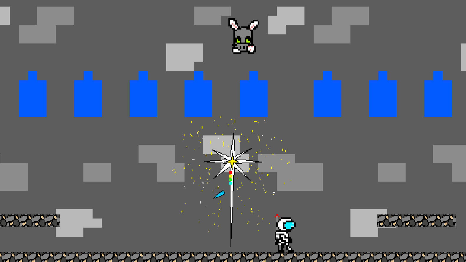 In the year 7052, the dangerous and ferocious Bunny Lord takes over the famous red planet we call Mars! This beast has turned cacti purple, hypnotized innocent bunnies, and summoned terrifying fire and ice minions! Your goal is to save the almighty bunny-sized weather wand from Bunny Lord before the red planet becomes his own!