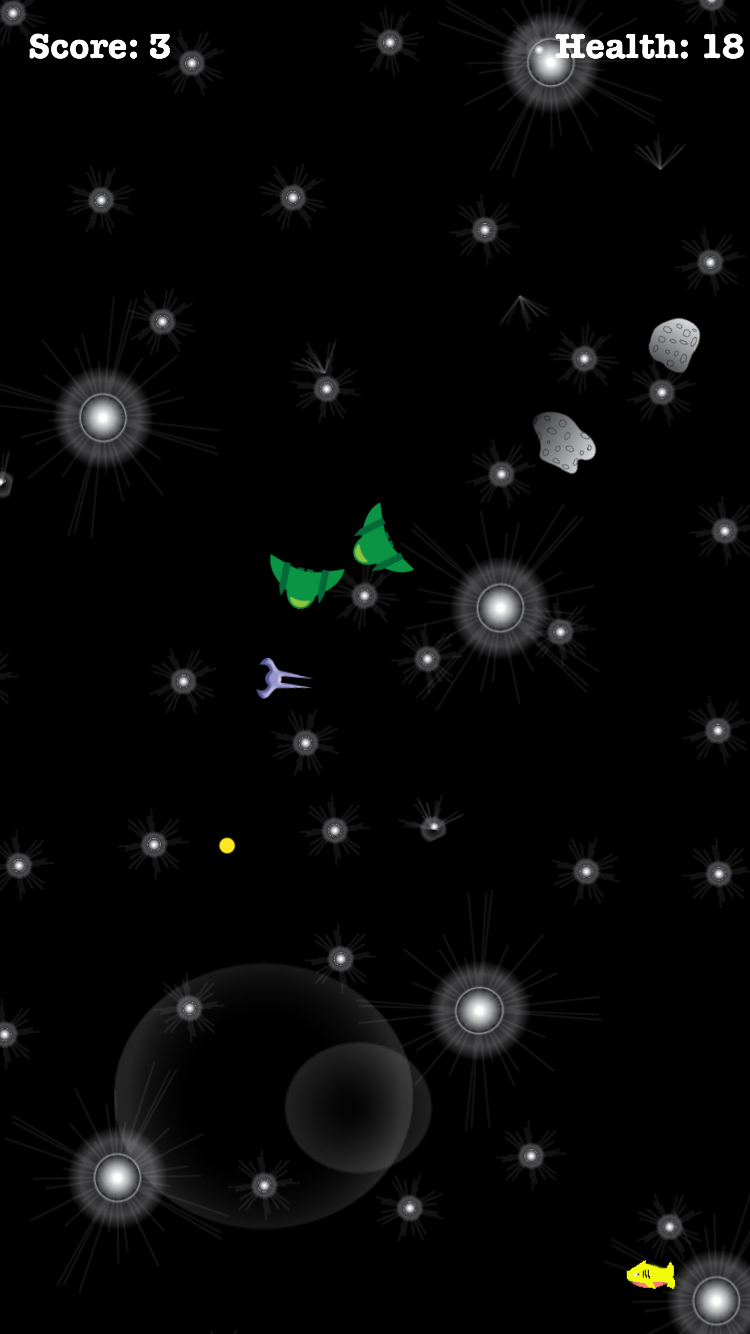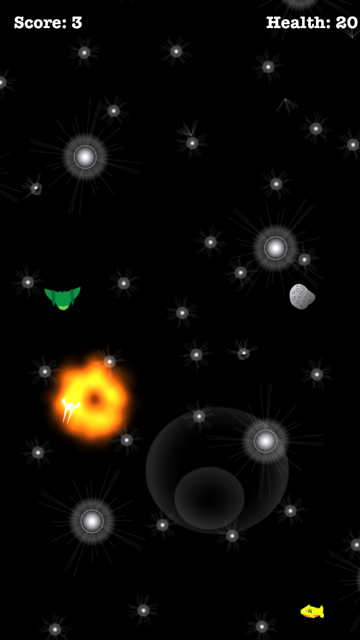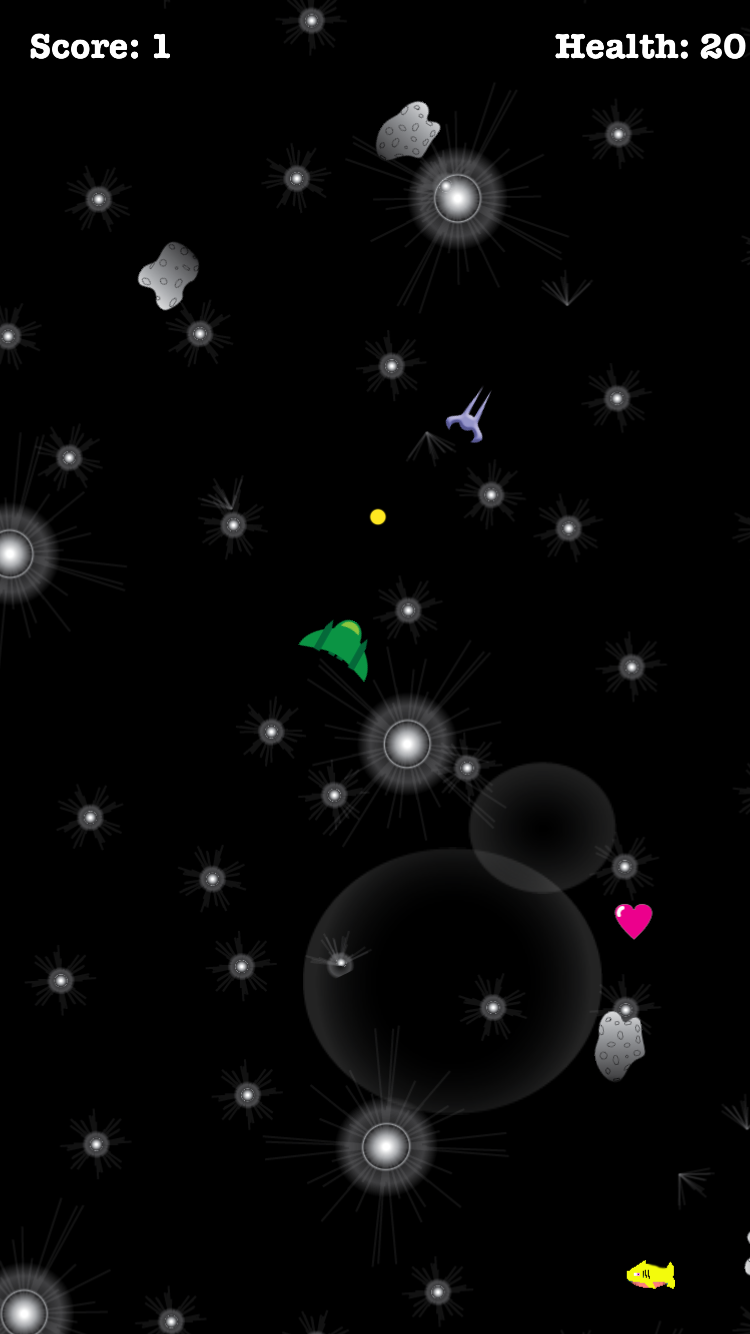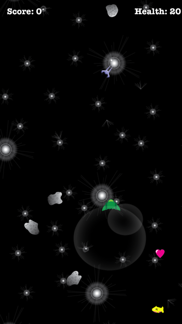 Use the onscreen joystick to move across the screen, dodging asteroids and lasers fired by enemy ships. Lead the enemies into asteroids to gain points. Pick up hearts to gain more health. If you find yourself in a sticky situation use a BOOGABLAST for a special surprise.