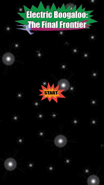 Have you ever wanted to fly? How about shoot fire from your eyes? Well Electric Boogaloo: The Final Frontier does none of these things. Electric Boogaloo The Final Frontier is a thrilling space adventure where you are chased through an asteroid field by evil alien ships. You must act fast and think on your feet to stay alive and run them into the asteroids. Good luck!